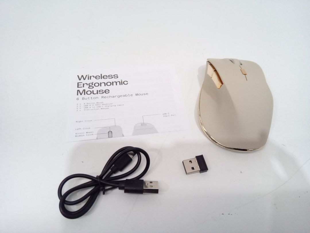 North Wireless Rechargeable Ergonomic 6 Button Mouse with Bluetooth and USB Receiver - Beige