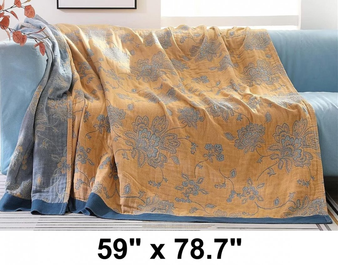 Sayt Rlae Cotton Boho Throw Blanket - 59" x 78.7" - Yellow/Blue (Model: DETZ-001J-150*200)