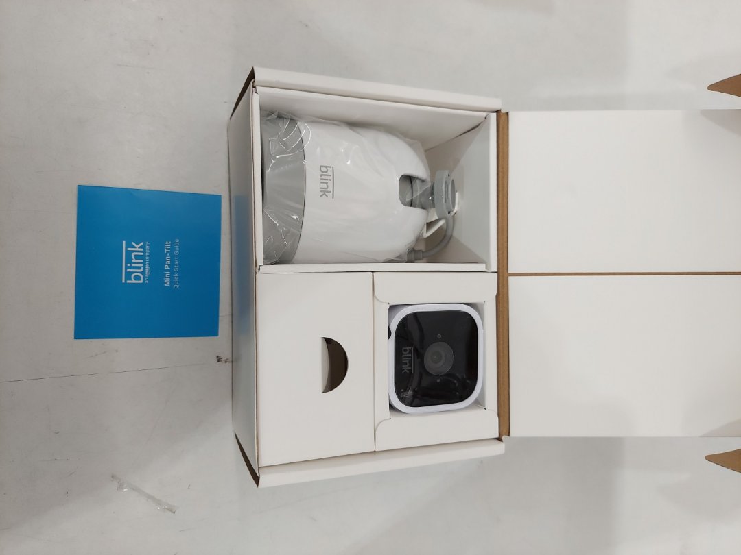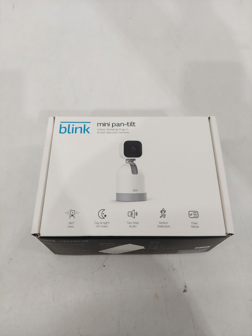 blink Mini Pan-Tilt Camera - rotating indoor plug in security camera - with 2-way audio - white (model: bae041000u)