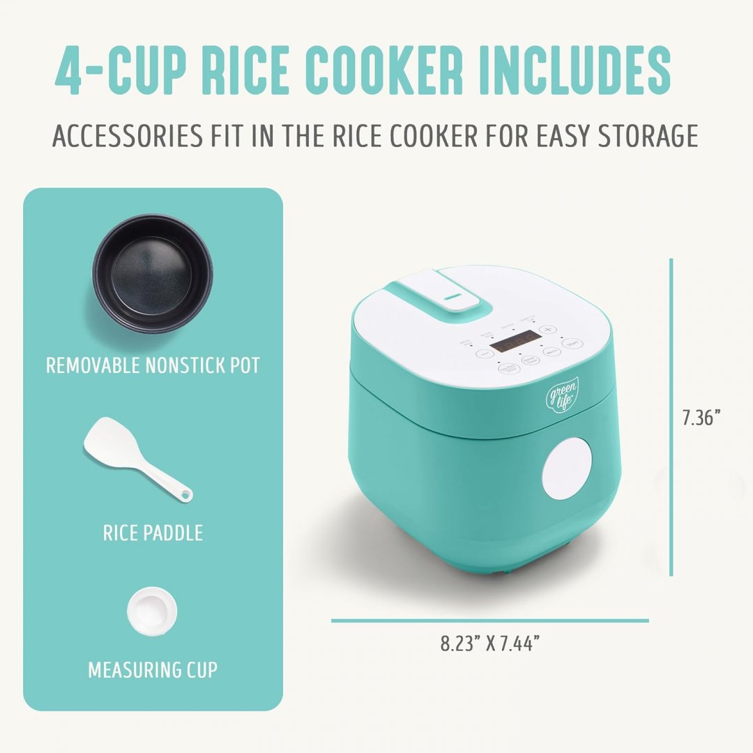 GREEN LIFE ceramic nonstick RICE COOKER - TEAL - 4 CUPS
