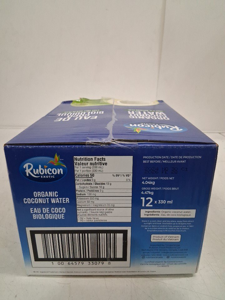 12PK *Recently Expired* Rubicon 100% Natural Organic Coconut Water - 330ml (EACH) - 3600Ml Total