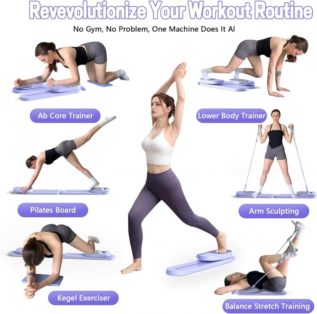 flexella multifunctional portable split pilate/ski machine fitness board with digital counter - 300lb capacity - navy blue / purple
