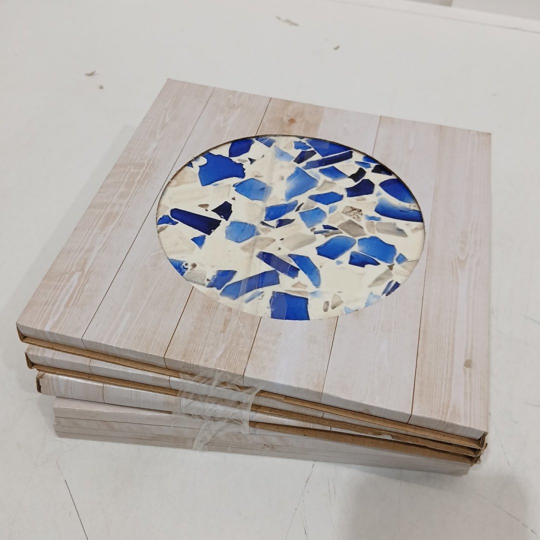 5PK IH CASA DECOR 8" Round Ceramic Trivet Stones - Assorted Patterns (Stone, Blue Shard)