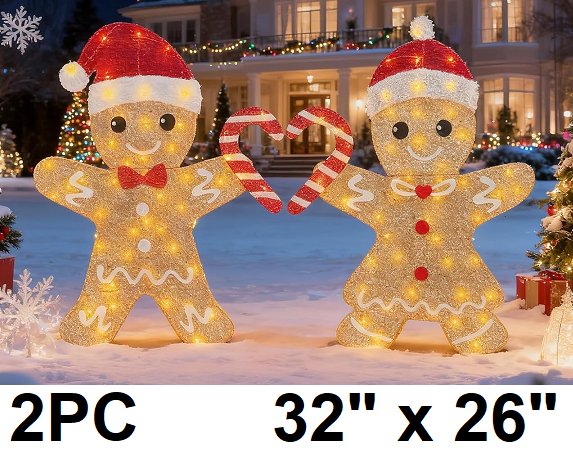 2pc LED outdoor christmas gingerbread couple light - 32" x 26"/each - brown/red