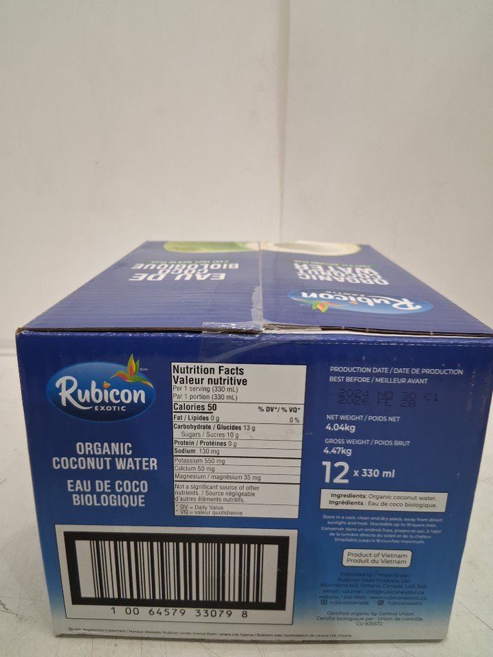 12PK *Recently Expired* Rubicon 100% Natural Organic Coconut Water - 330ml (EACH) - 3600Ml Total