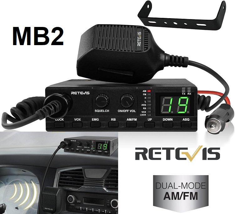 Retevis MB2 Dual-Mode AM/FM CB Radio with Mic & Mounting Kit – 12V (model: MB2)