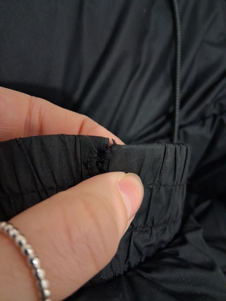 small tear on the stitching of one of the sleeves.