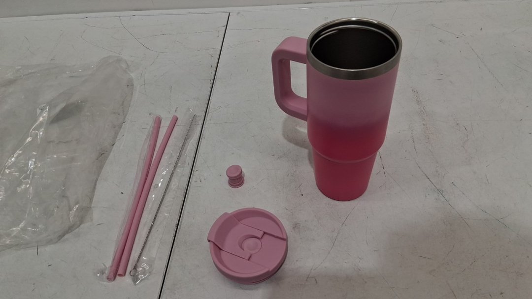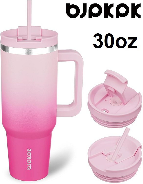 bjpkpk stainless steel insulated tumbler with handle & straw lid - 30oz - cherry blossom