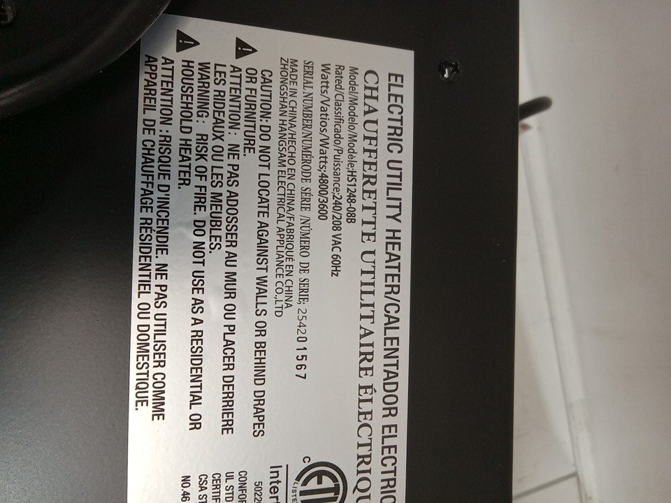 ctsc fan-forced thermostat control wall/hanging electric heater with touch control AND remote - 500sq.ft coverage - 4800w - 30amp - black (model: hs1248-08b)