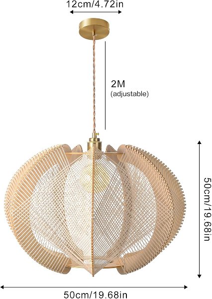 Arturesthome Retro Wooden Pendant Hanging Ceiling Light Fixture - Natural