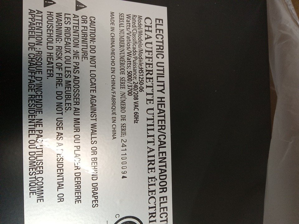 CTSC Electric Garage Heater Hard Wired Fan-Forced Wall/Ceiling Mounted Heater with Built-in Thermostat - 5000W - 240V - 17065BTUs (model: hs1250-06)