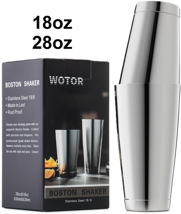 WOTOR Boston Stainless Steel Weighted Cocktail Shaker Set - 18 oz/28 oz - Brushed Silver
