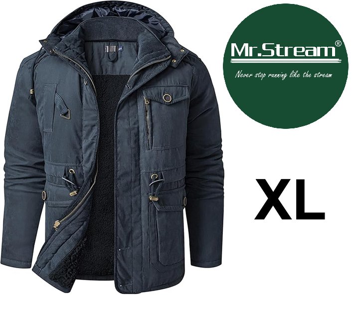 Men's Mr.Stream Sherpa Lined Fleece Hooded Winter Jacket - Extra large - Blue - (Style: CA1358Blue-XL)
