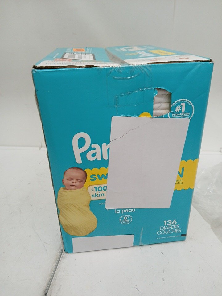 136PK PAMPERS SWADDLERS DIAPERS - NEWBORN SIZE