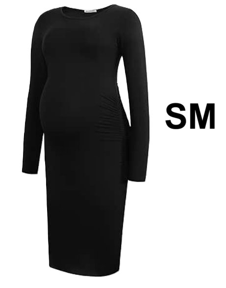 WOMEN'S SMALLSHOW LONG SLEEVE RUCHED MATERNITY DRESS - SMALL - Black