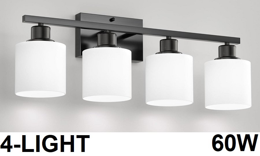 Over Mirror 4- LIGHT BATHROOM VANITY LIGHT FIXTURE - 60W - BLACK - (MODEL:AB-VANITY-SC-4B)