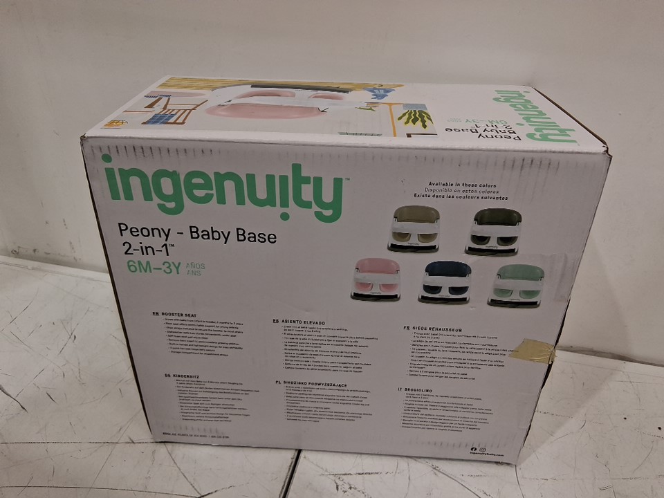 INGENUITY BABY BASE 2-IN-1 BOOSTER SEAT WITH FOOD & DRINK TRAY - 50LBS CAPACITY - WHITE/Peony - (MODEL: 11576)