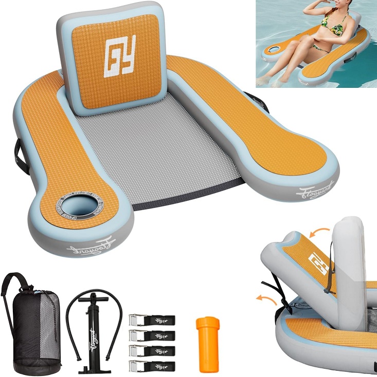 Floayant Pool Lounger Float with cup holder and reclining back - grey/orange (model: FB-yz-001)