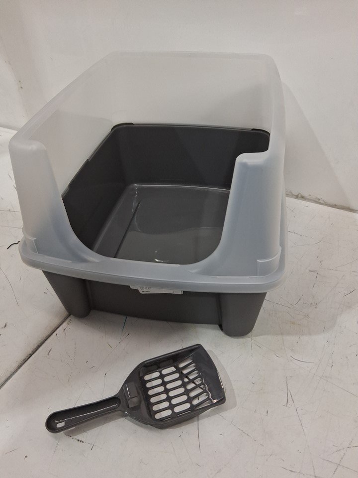 IRIS USA Large open top Cat Litter Box with scatter shield and scoop - 19" x 15" x 11.8" - grey/clear