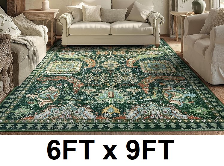 laise boho machine washable area rug non slip carpet - 6ft x 9ft - green