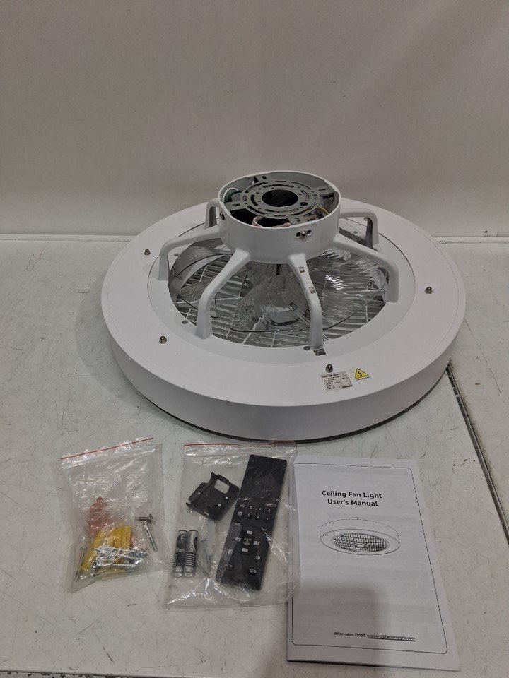 Smart Flush Mount LED Ceiling Fan with Light Kit and Remote/App Control - 20" - white (MODEL y24fsd0013-5801)