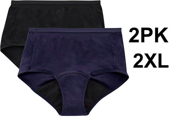 2pk women's hanes fresh and dry discreet period underwear - 2XL - black/Blue