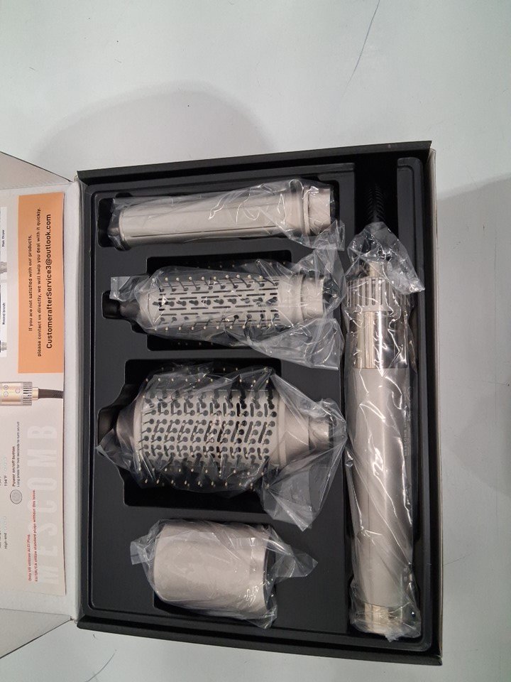 6pc mescomb 5-in-1 high-speed hot air styler and drying system - fast dry, curl, volumize, and smooth - champagne gold (model: f16)