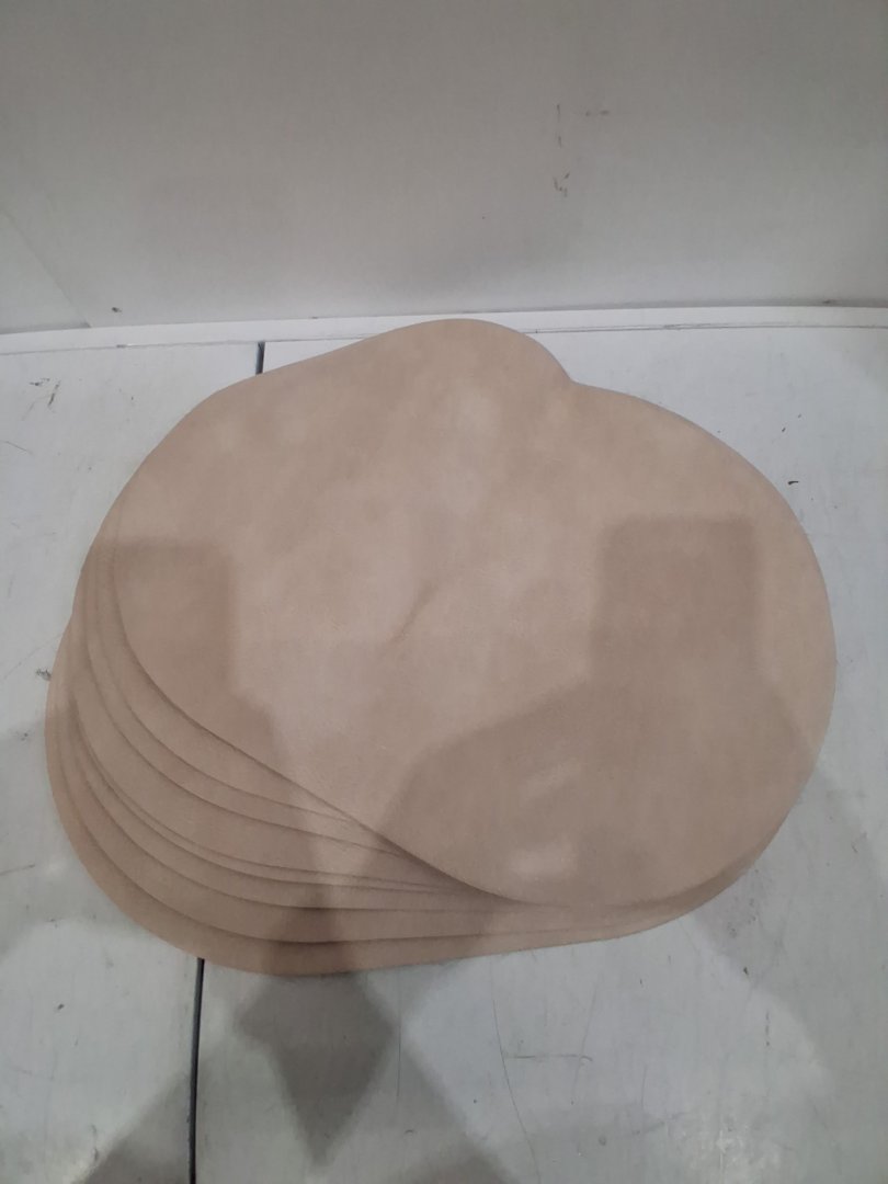 8PK Oval Faux Leather Place Mats - 17" x 12" - BIEGE/KHAKI