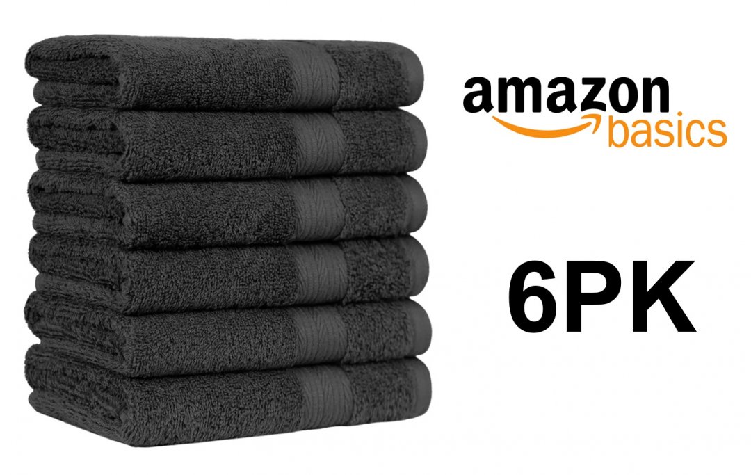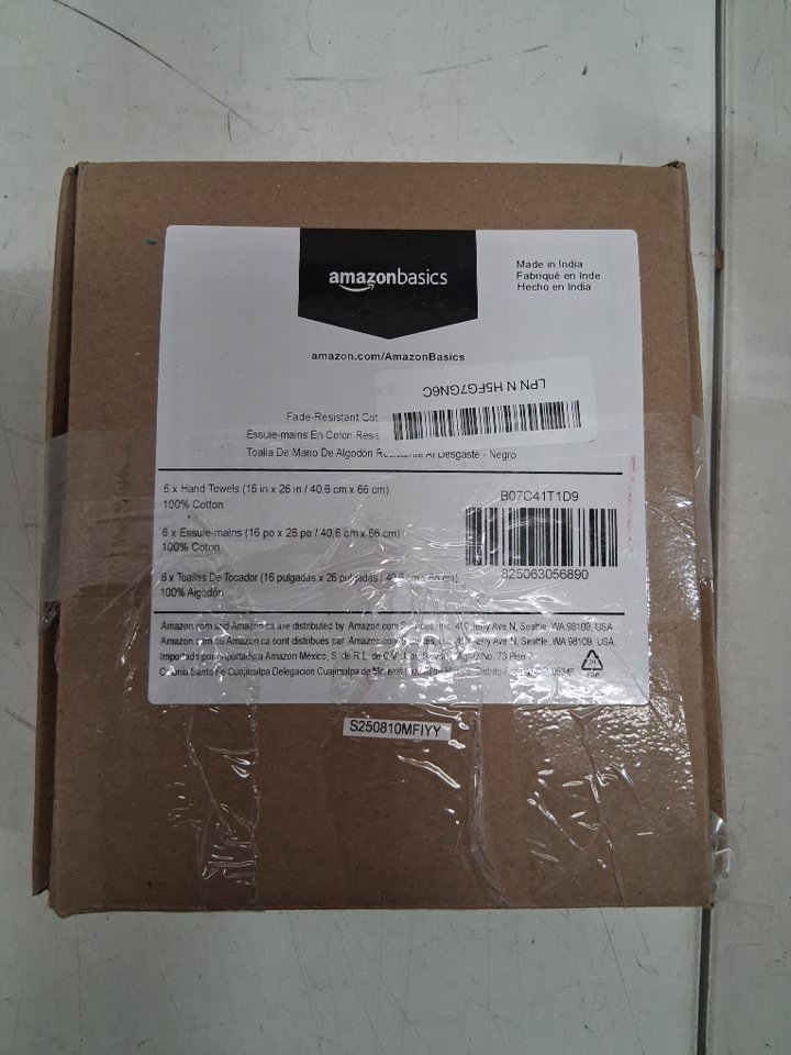 6PK Amazon Basics Hand Towels - 16" x 26" - Black
