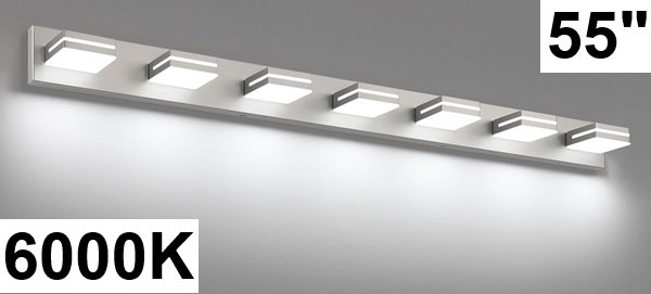 sinerise modern led 7-light bathroom vanity light fixture - 55" x 4.5" 6000k - brushed nickel (model: 9553e-7t)