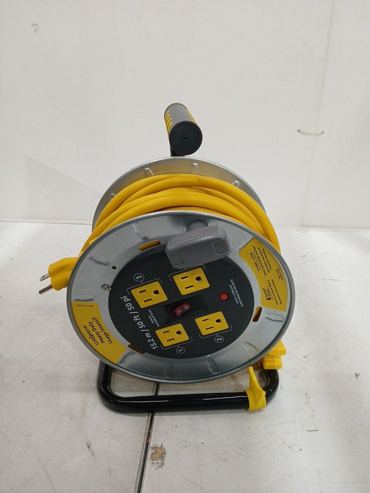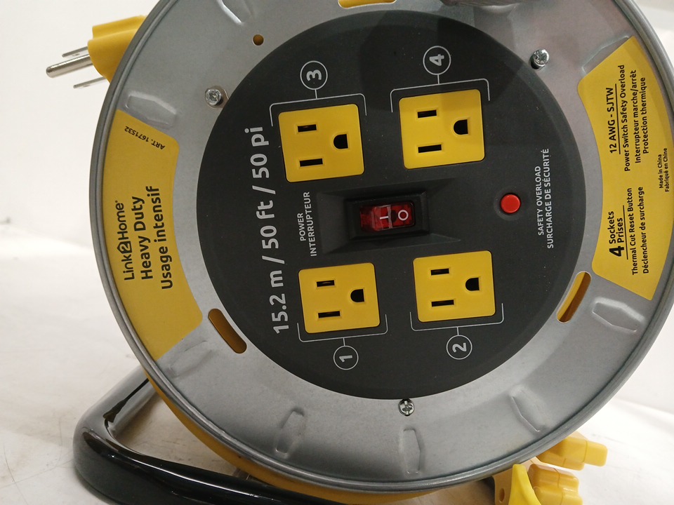 link2home Cord Reel Extension Cord 4 Power Outlets - 50FT - Yellow/BLACK