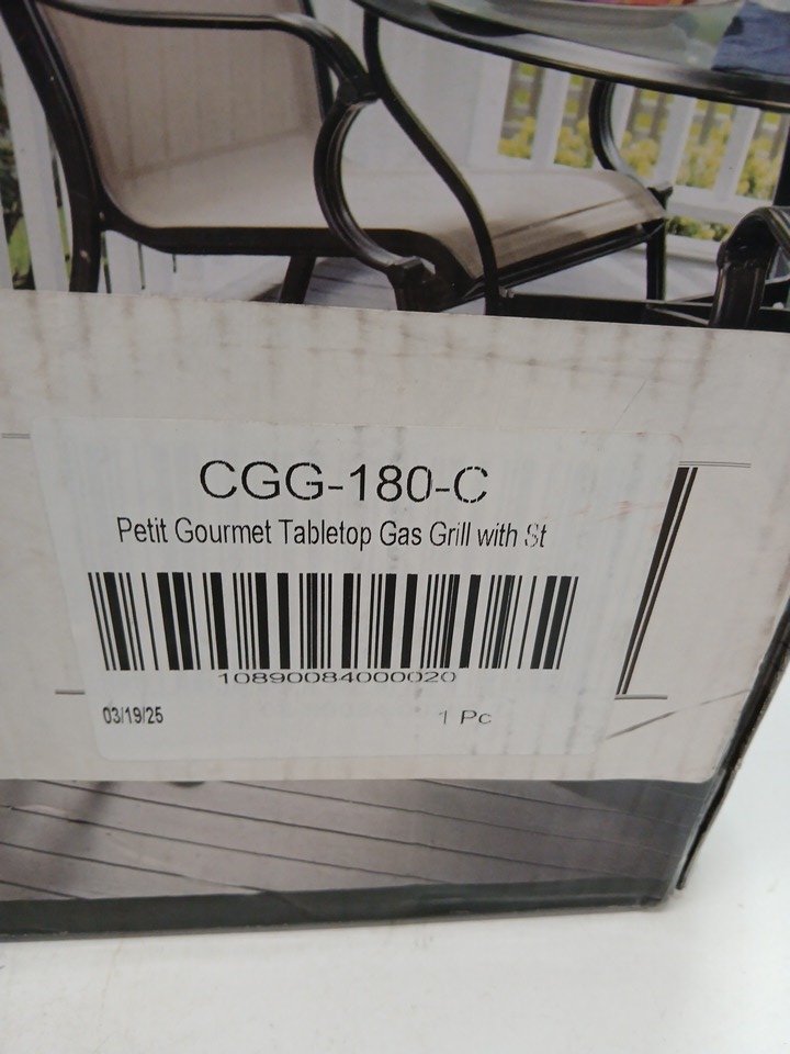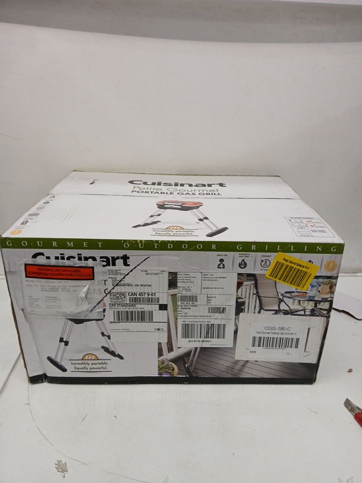Cuisinart Petite Gourmet Portable Gas Grill with VersaStand Small Compact Tabletop BBQ - black/red (model: cgc-180-c)
