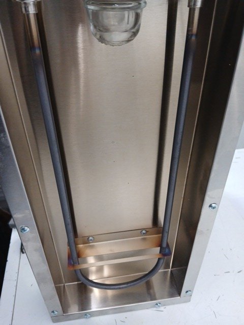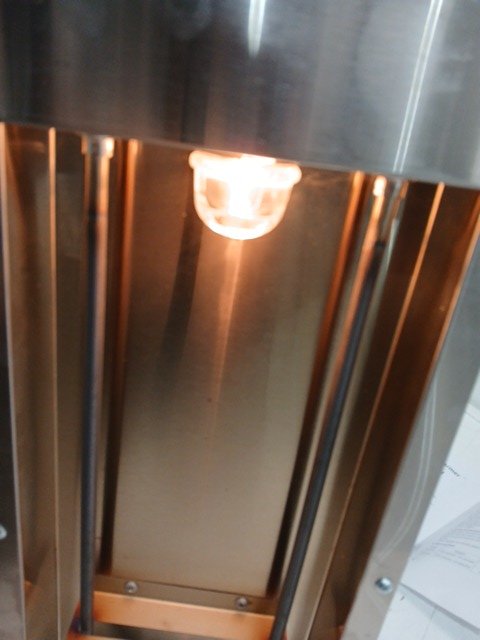 There are marks from the heat near the bulb and residue in some spots of the product. Tested for basic power only.