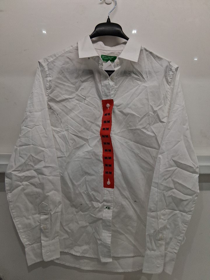 men's united colors of bentton button up blouse shirt - medium - white - (style:1873417)