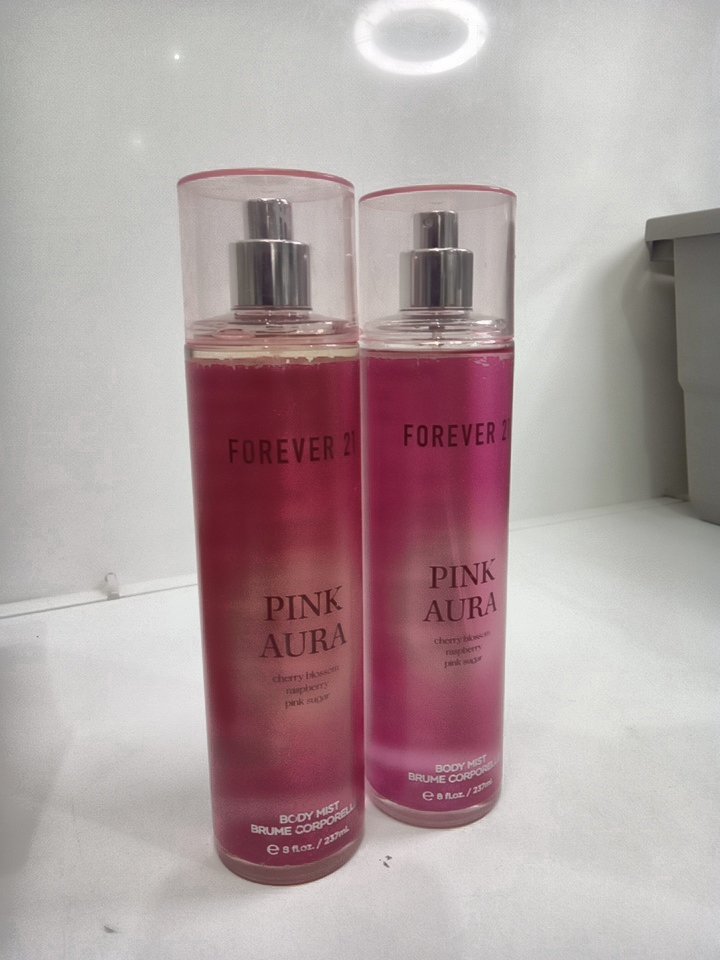 2 women's FOREVER 21 PINK AURA CHERRY BLOSSOM RASPBERRY AND PINK SUGAR BODY MIST - 237ML/each