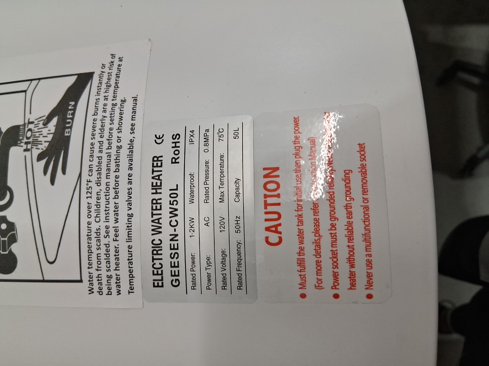 GEESEN Electric Hot Water Heater Storage - 13.2gal - 120v - white (Model: geesen-cw50l)