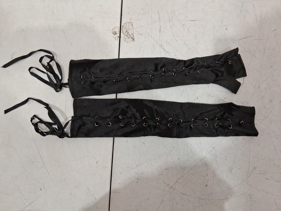 WOMEN FULL LENGTH FINGERLESS LACE UP GLOVES - OSFM - BLACK