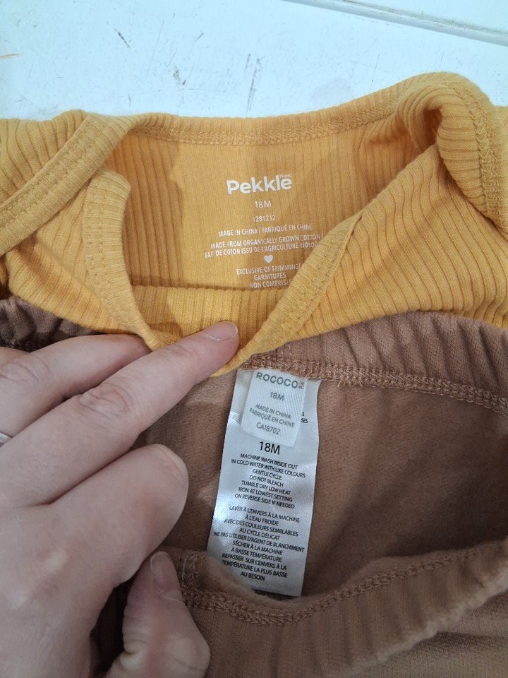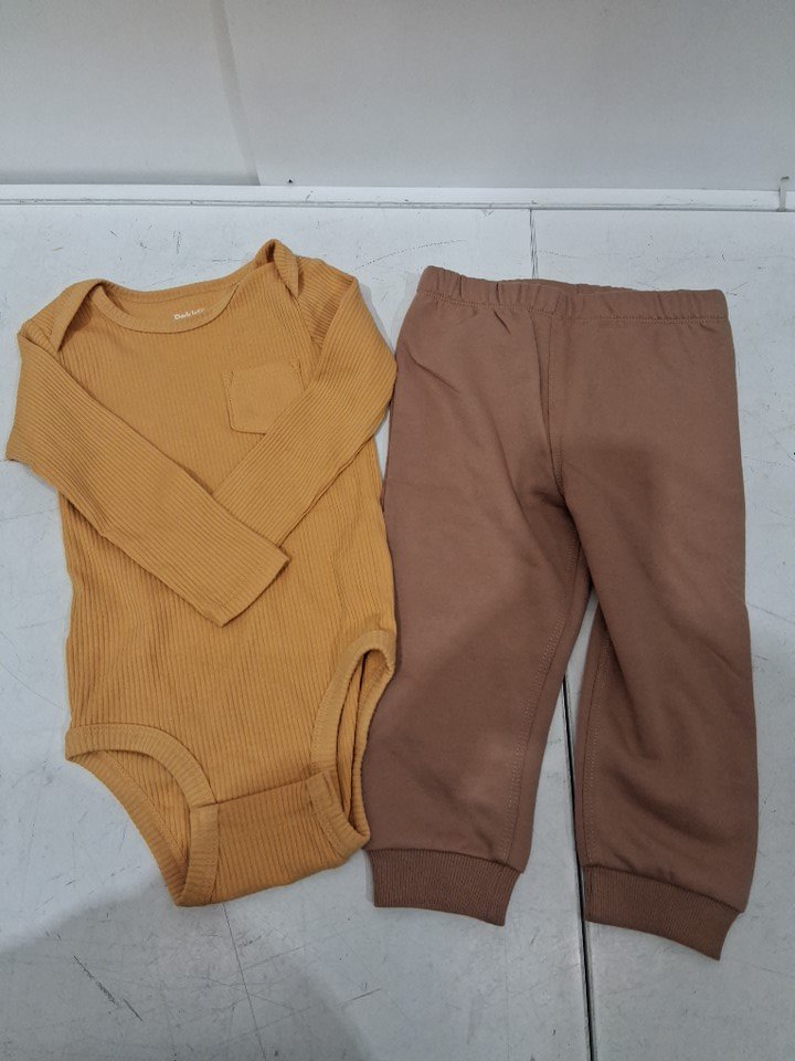 2pc assorted pekkle and rococo toddler long sleeve body suit and sweat pants - 18m - yellow / brown