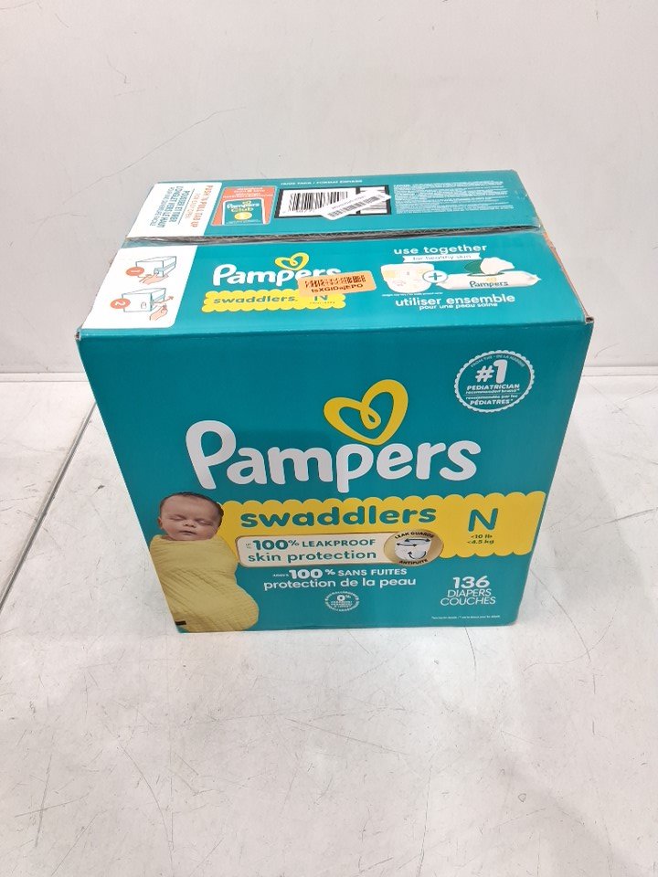 136PK PAMPERS SWADDLERS DIAPERS - NEWBORN SIZE