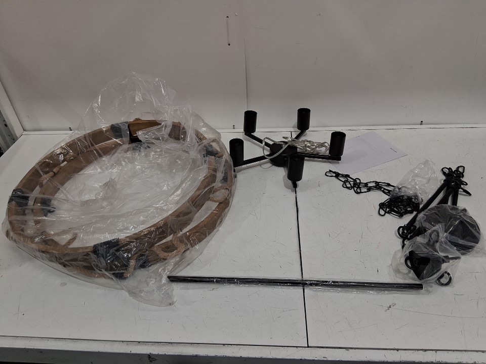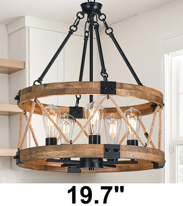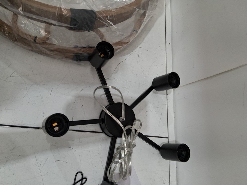 5-Light ADJUSTABLE Rustic Rope Pendant Chandelier - 19.7" - BROWN/BLACK