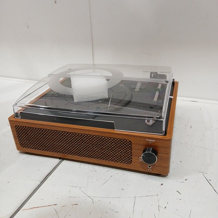 RETROLIFE RECORD PLAYER TURNTABLE WITH BUILT IN STEREO SPEAKERS, 3 SPEED MODES, WIRELESS BLUETOOTH CONECTION, AND USB PORT FOR MUSIC, AUX IN RCA OUT, 12.8" X 10.8" X 11.8" - BROWN/BLACK (MODEL: R608)