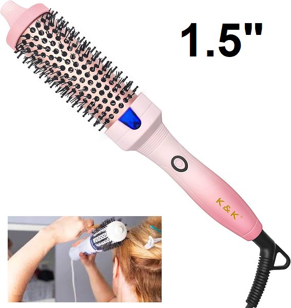 k&k professional thermal brush heated curling iron - 1.5" - pink (model: qy-2029)