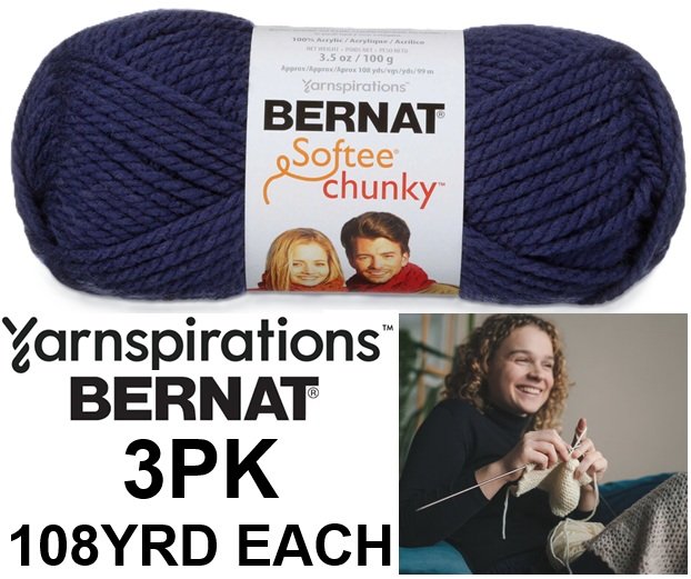 3PK Yarnspirations bernat softee chunky yarn - 108yds each - faded denim (model: 161128)