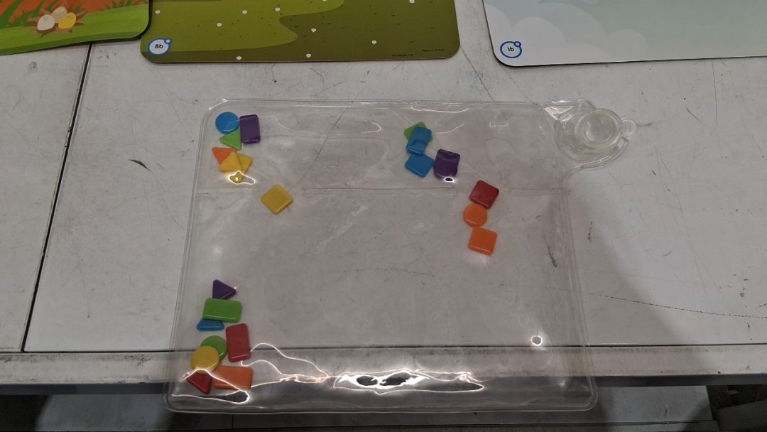the water pad has had water in it, indicating previous use, and one shape is missing