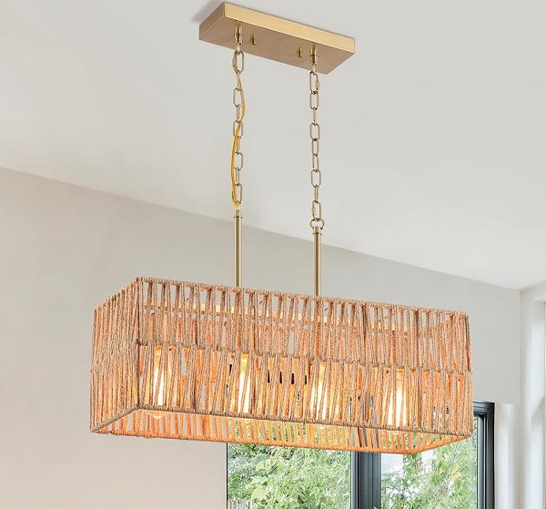 hchunqjor 4 light antique woven kitchen island chandeliers - 23.6" x 9" x 65" - Anitque Gold