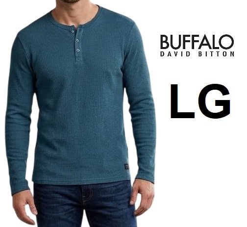 MENS BUFFALO DAVID BITTON WAFFLE KNIT LONG SLEEVE henley shirt - LARGE - light BLUE (style: 1619992)