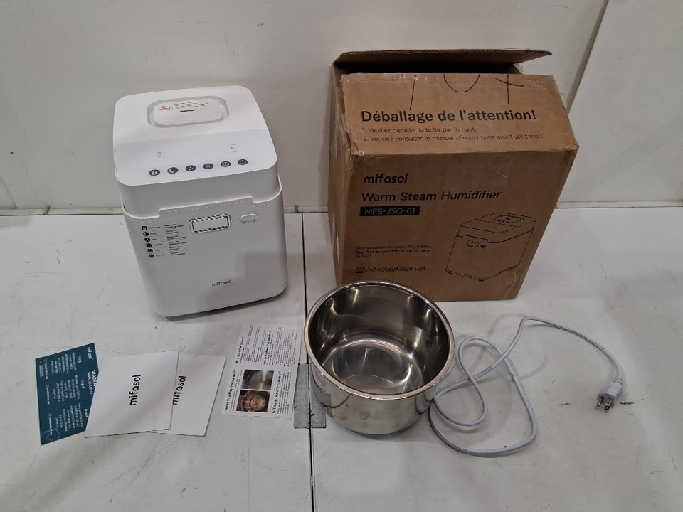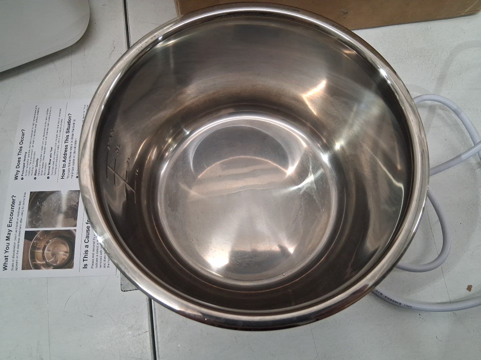 There are fingerprint smudges/water residue inside the metal bowl and some heat marks on the heating element indicating previous handling/use (see photos) Tested for power