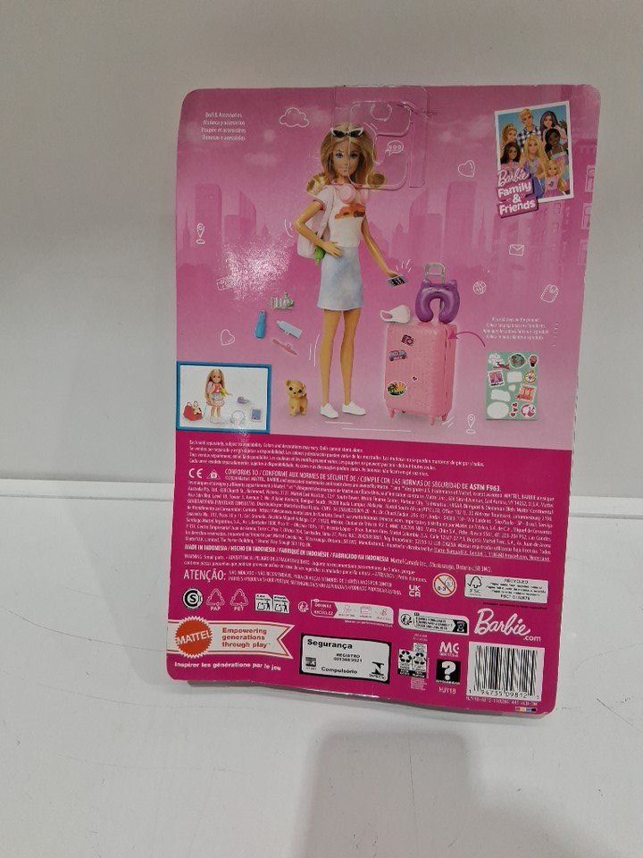 14pc barbie doll & accessories travel set with puppy malibu barbie - multicoloured (MODEL: HJY18)