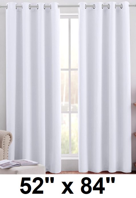 (2 panels) long curtains with grommet top - 52" x 84" - WHite/silver