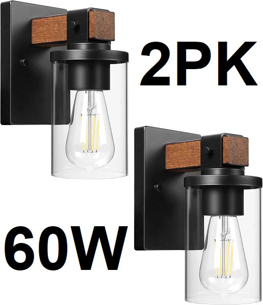 2PK DEERINE FARMHOUSE WALL SCONCE - 60W - BLACK/WOOD - (MODEL:DVL01A)